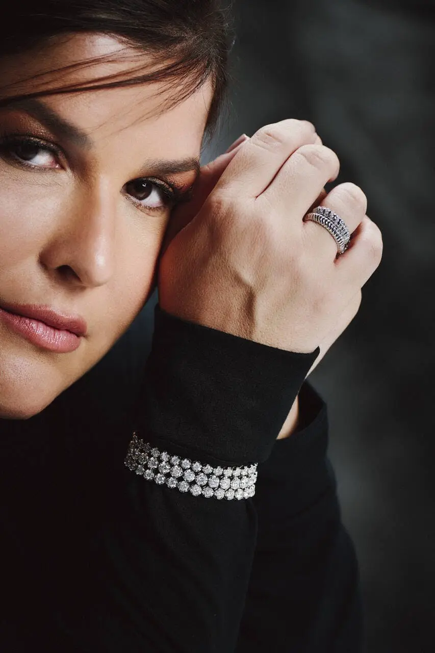 Fato: Lady Di sabia o que usar para elevar seus looks com sua personalidade. Os grandes aliados de suas produções eram os braceletes e para o dia a dia gostava de usar um simples de ouro ou prata, ou até mesmo combinado com um relógio. Para os eventos de gala, a princesa pesava um pouco mais através de pedras trabalhadas em designs exclusivos e maximalistas, além de pingentes que conversavam muito bem com suas outras peças glamurosas.